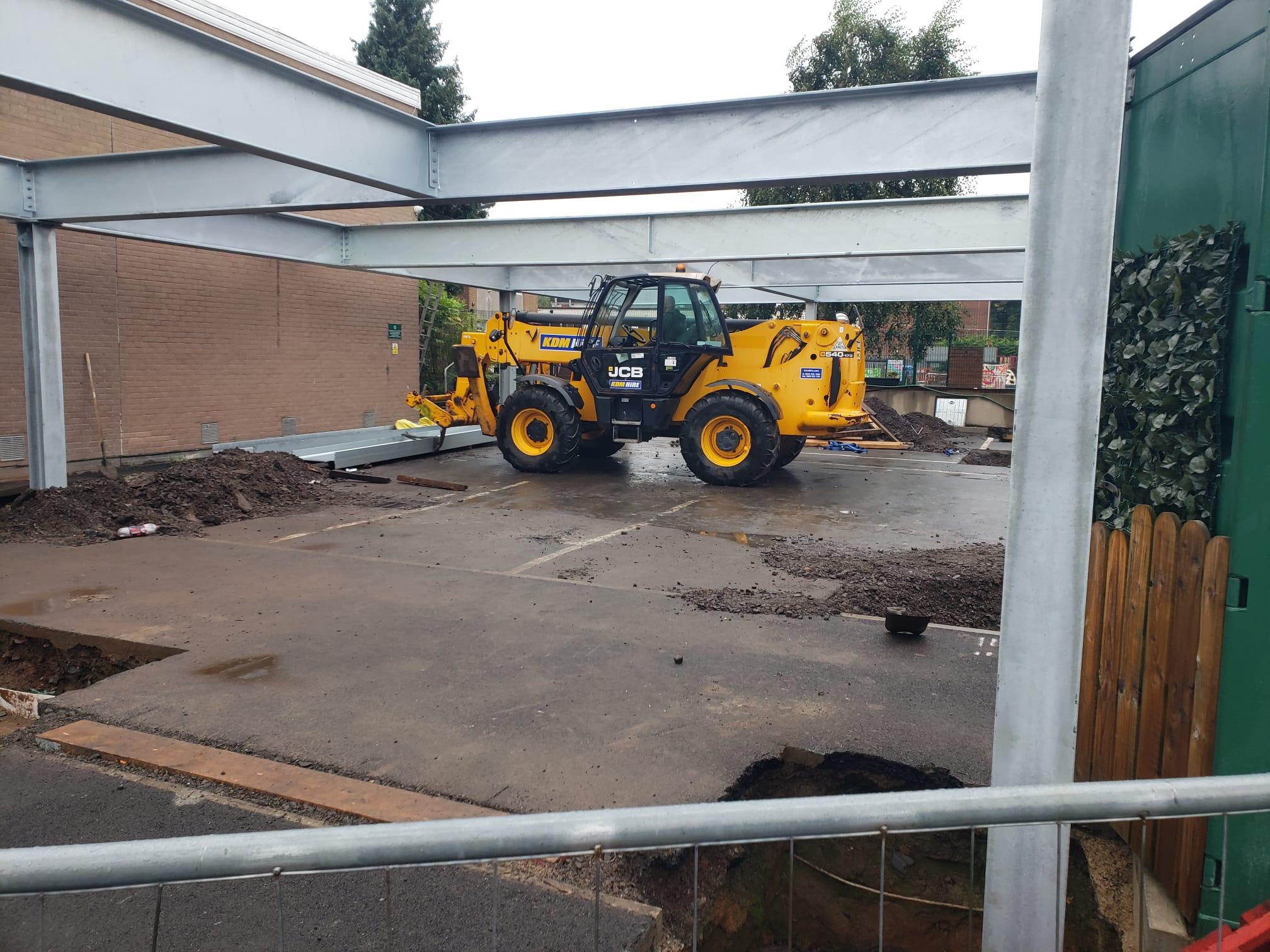 The Padel court foundations going into the car park